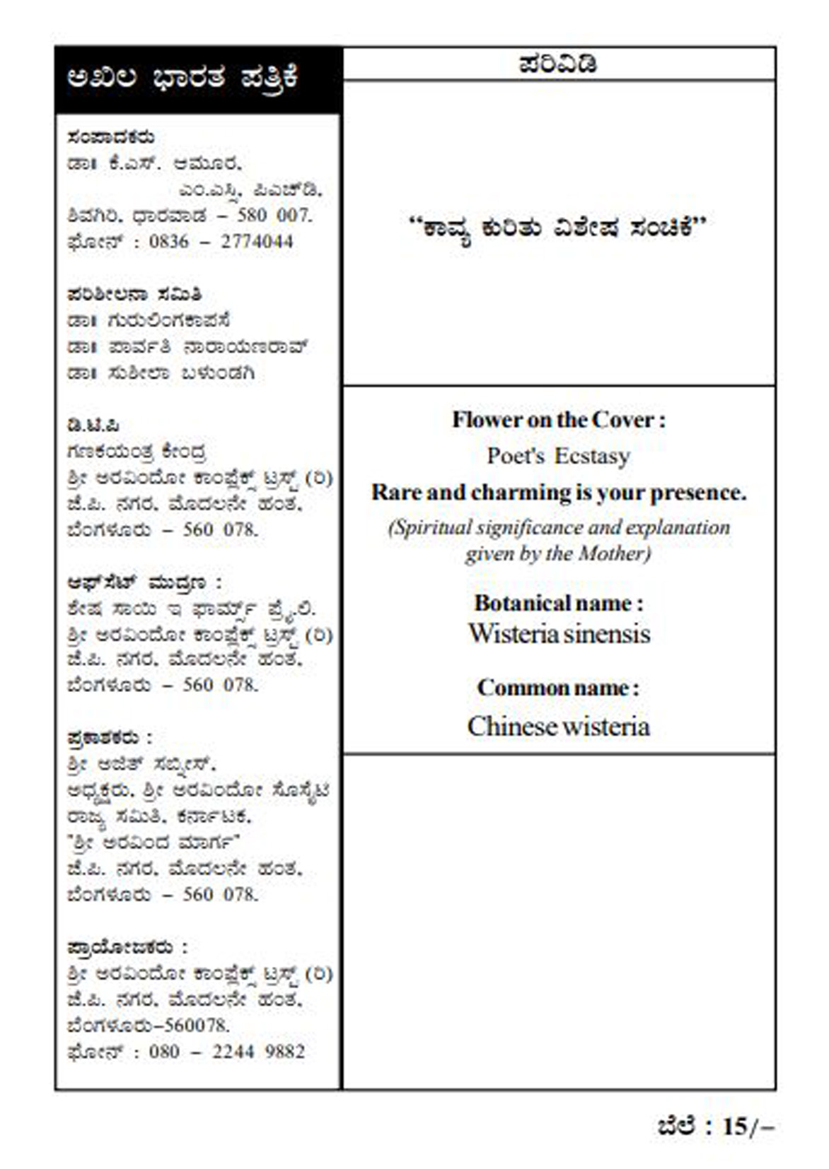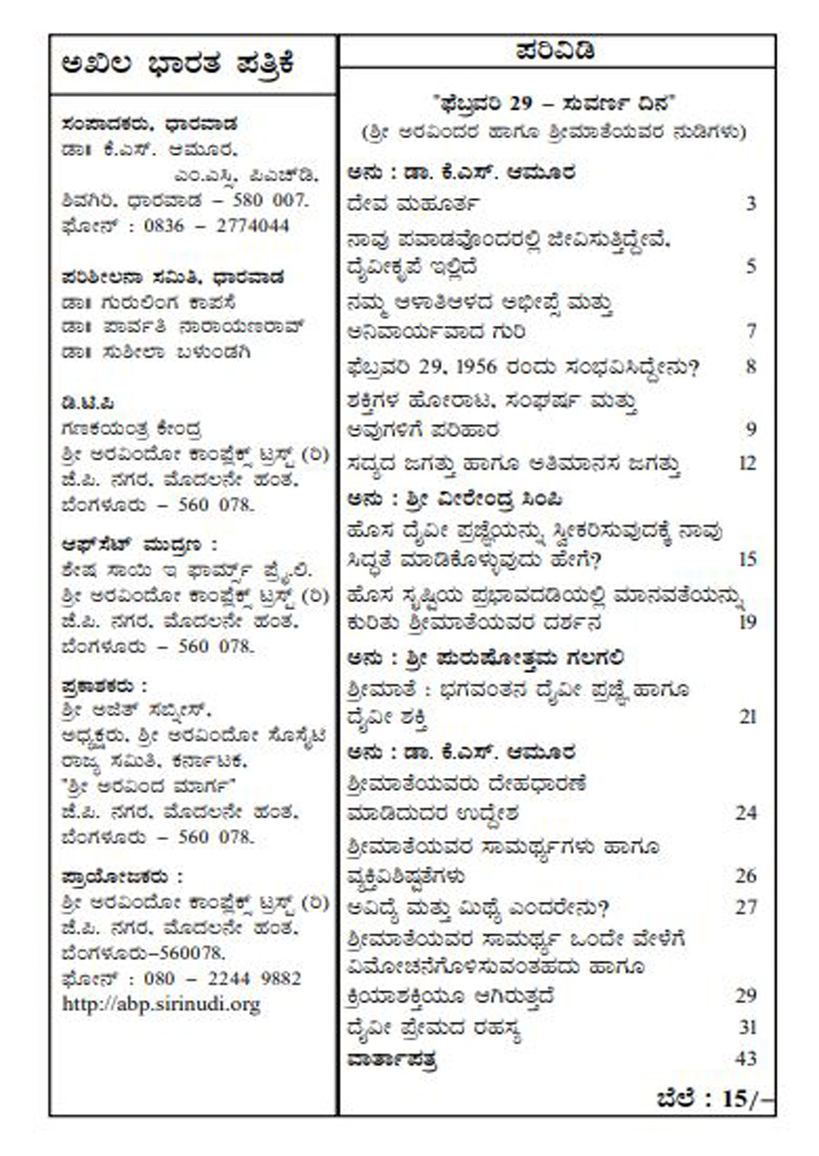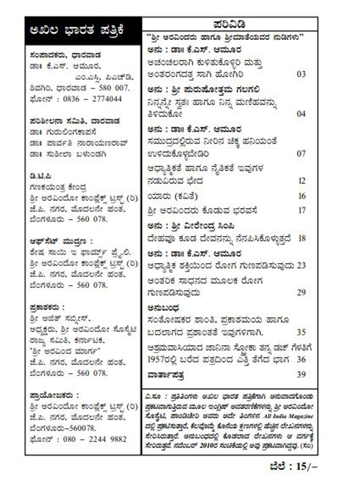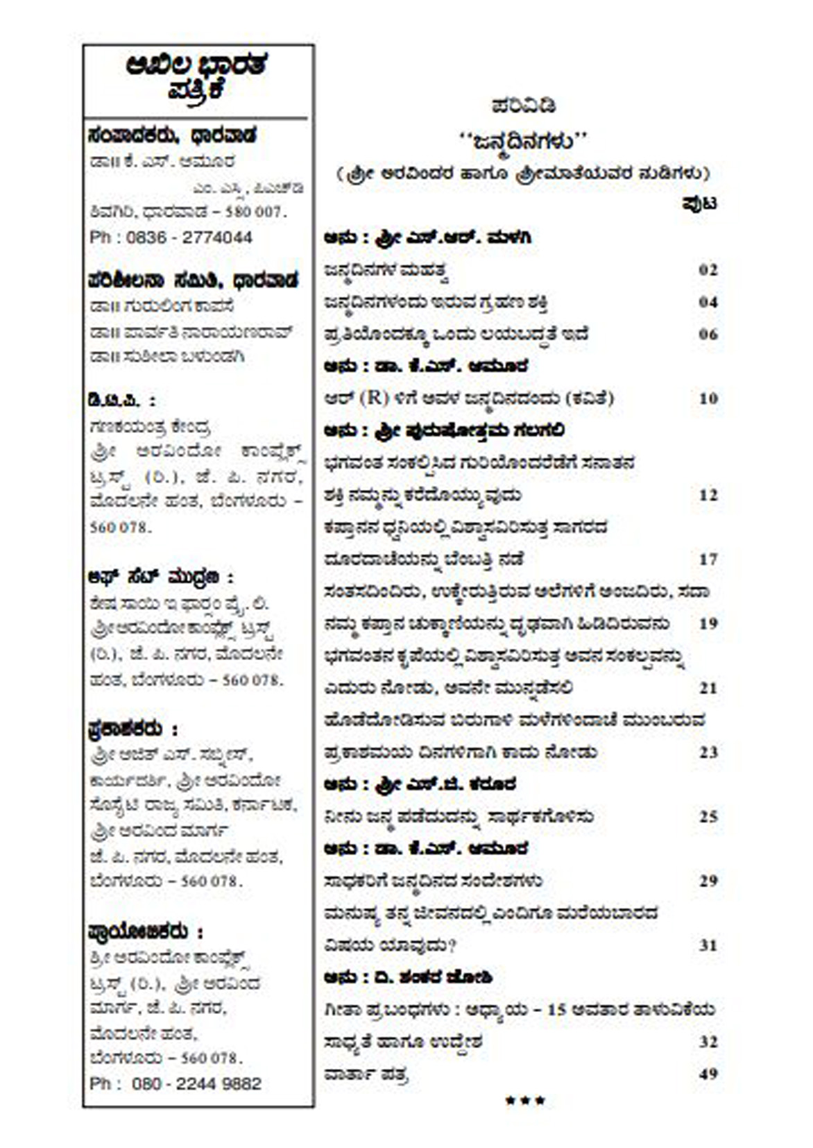 Sri Aurobindo Society State Committee Karnataka