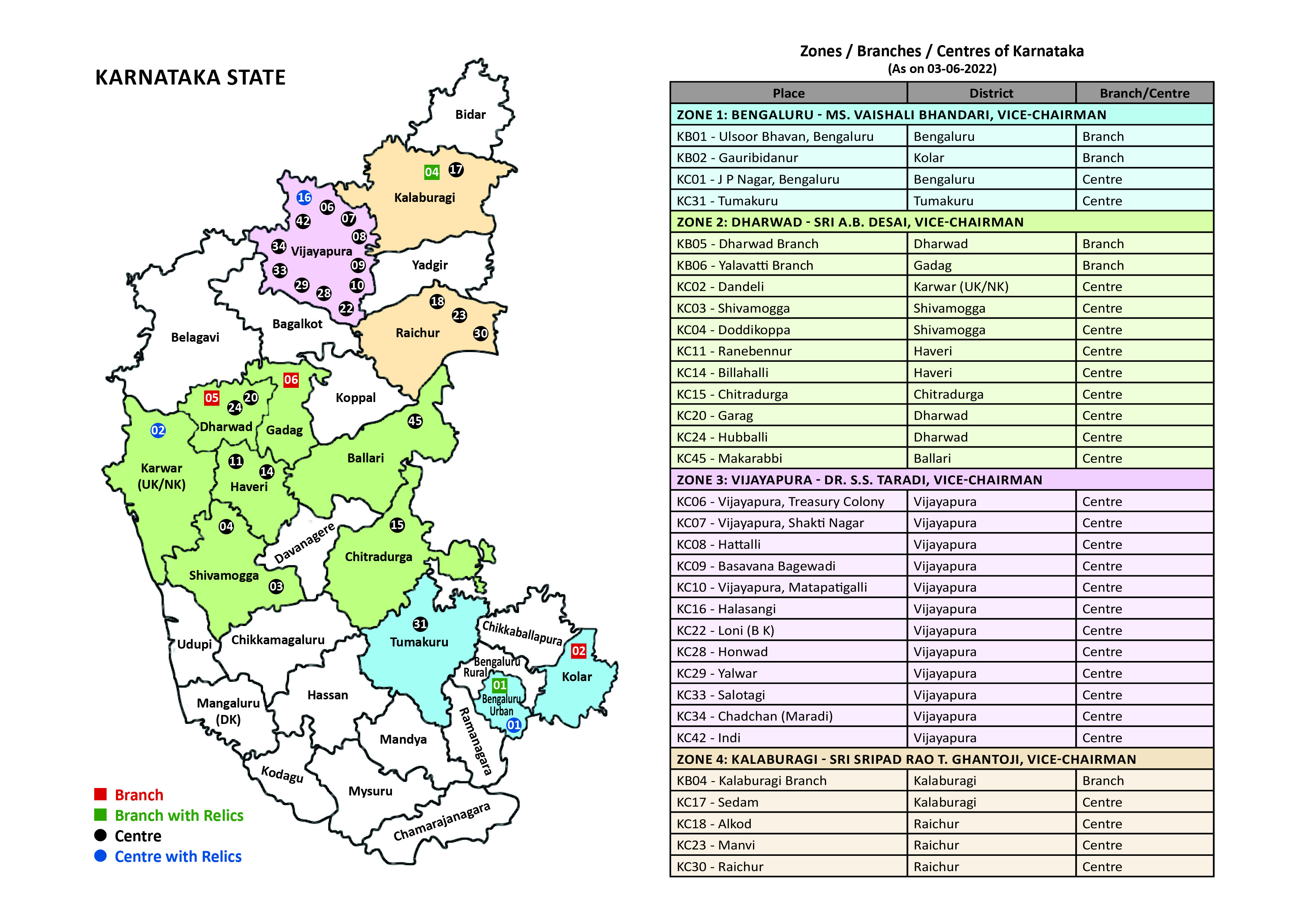 CENTERS AND BRANCHES KARNATAKA