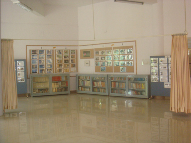 Exhibition of works of Sri Aurobindo and the Mother are collected from different sources, compiled and arranged with visual effect on the pin-up boards at the cultural hall regularly. These are displayed under a specific title and each title comprising of about 30 slides. There are about 2000 slides available under 48 titles. These are done by the volunteers.